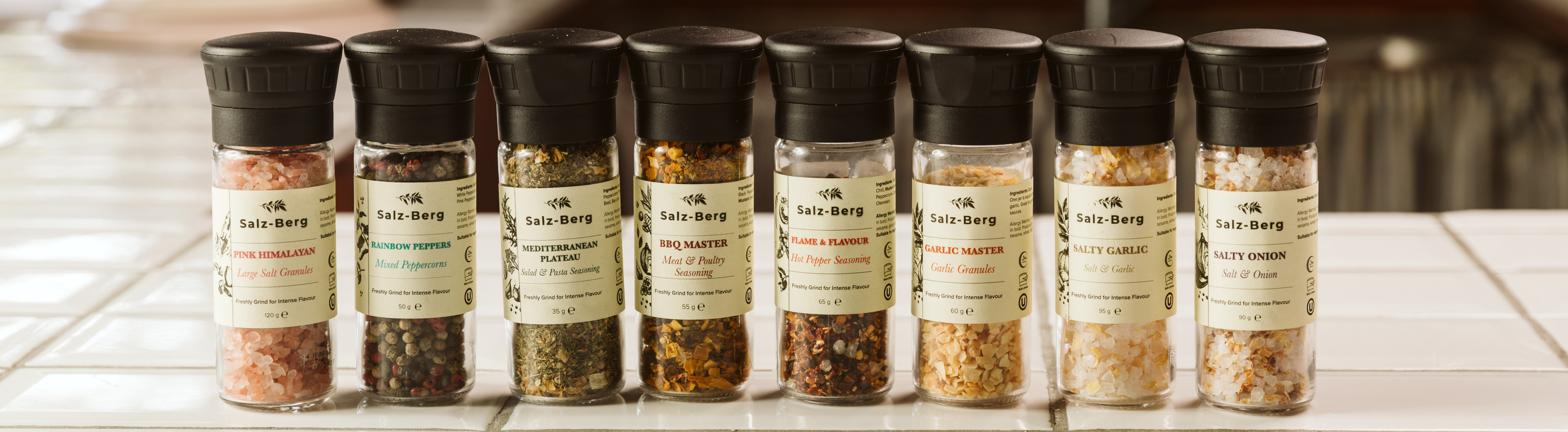 Salz-Berg is a brand dedicated to delivering flavour without compromise. Our product range is built on the use of whole granules rather than pre-ground spices, preserving the full aroma and natural integrity of each ingredient. Consumers can visually verify our quality — every jar showcases the individual ingredients, reinforcing trust and authenticity.
