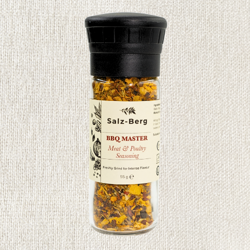 BBQ Master is your go-to grilling blend — rich with paprika, garlic, onion, black pepper, and a touch of heat from red hot pepper. Balanced with herbs like basil and turmeric, this smoky, savoury mix is crafted to bring out the best in meat and poultry.